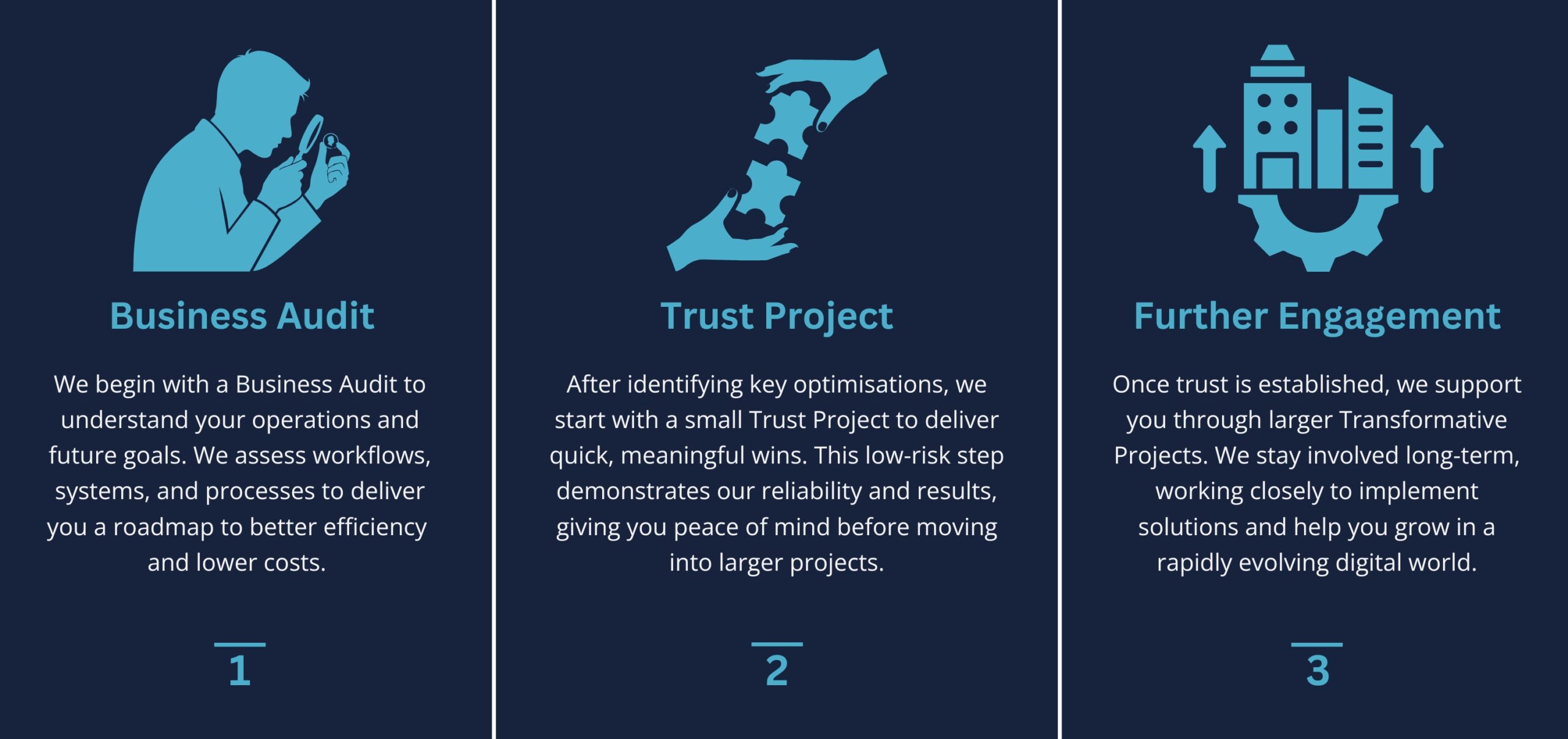 Build My Idea is a collective of independent, specialist businesses working together as a single team. We combine our expertise to provide all-in-one support, covering everything from AI and software to branding and strategy. Because each member of our group runs their own company, we operate with lower overheads and higher accountability than traditional agencies. This structure gives you a scalable, cost-effective team of experts who work directly on your project to get it built.